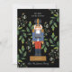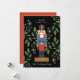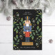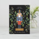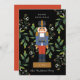 Ilustração original de um soldado nutcracker clássico com holly e mistério no fundo. Espaço reservado para foto opcional no verso.