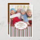 O esquema de cores na moda desta estação de vermelho, o azul e o marrom fazem um design bonito neste cartão com fotos listrado do feriado. Caracteriza uma grande foto de sua família com medalhão customizável do texto no centro. Elegante, contudo divertimento!