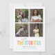 Este cartão de feriado plano e divertido contém as palavras "a lista mais legal" juntamente com o espaço para quatro fotos quadradas diferentes. A parte inferior do cartão tem espaço para uma saudação, assim como o seu nome.