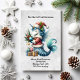 Para o primeiro Natal do seu filho, aqui está uma memória para salvar para mostrá-lo mais tarde. Um belo cavalo marinho decorado em traje de Natal com uma mensagem de mamãe e pai. A parte traseira do cartão também tem uma mensagem. O fundo é um white paper brilhante