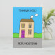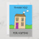 Uma bela casa de desenho animado com fumaça saindo da chaminé. As palavras "Obrigado por receber" acompanham a imagem.
