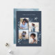 Um elegante design de cartão de feriado costeiro para praia ou moradores de terra com 4 fotos em um layout de colagem, adornada com coral de aquarela azul, estrelas e botânicos. "Seas & Saudações" ou sua escolha de cartões de natal aparece no topo, com sua assinatura de família e o ano no canto inferior esquerdo.