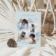 Um elegante design de cartão de feriado costeiro para praia ou moradores de terra com 4 fotos em um layout de colagem, adornada com coral de aquarela azul, estrelas e botânicos. "Seas & Saudações" ou sua escolha de cartões de natal aparece no topo, com sua assinatura de família e o ano no canto inferior esquerdo.