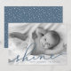 Compartilhe cartões de natal com esses cartões com fotos chic Hanukkah apresentando sua foto horizontal ou paisagística favorita de sangria de cheio. "Brilho" aparece como uma camada de texto azul de slate na tipografia elegante de script com letra de mão. Personalize com seus nomes e o ano na base. Cartões invertidos a enfumaçado azul com uma camada de neve.