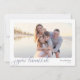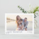 O elegante e subestimado cartão com fotos Hanukkah enquadra uma foto horizontal ou orientada a paisagem solteiro com uma borda ondulada e pontiaguda, sobre um fundo branco nítido. "Joyous Hanukkah" aparece no canto inferior esquerdo na escrita de caligrafia moderna, com seu nome de família e o ano à direita. Uma escolha simples e chique para suas saudações de Hanukkah 2021.
