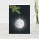 Enfeites de natal brilhante da lua de cheio pendurado numa tosse de pinheiro verde com fundo estrelado no céu noturno