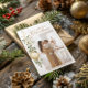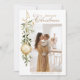 Este Cartão de Férias Dourado de Folha de Natal sofisticado, verde-verde, apresenta um design elegante com um verde-natalício, adornada com um ornamento de ouro solteiro. O verde, renderizado em aquarela detalhada, traz um toque da natureza ao cartão, enquanto o ornamento do ouro adiciona uma sutil dica de glamour de férias. No topo da carta, "Feliz Natal" é escrito lindamente em caligrafia decorativa, complementando o ornamento e acrescentando uma sensação quente e festiva. Adicione a foto da sua família, criada para combinar perfeitamente com o design. Abaixo da foto, um nome personalizável e ano faz dela um bem-estar precioso. A combinação de verde elegante, sotaques dourados brilhantes e toques pessoais cria um cartão de feriado eterno e sincero perfeito para enviar saudações da temporada a pessoas amadas.