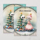 Ossos, bolas, e um pouco de magia - o espetáculo de Natal do esqueleto. O esqueleto da frente veste um vestido cor-de-rosa e um chapéu clássico de Papai Noel, dando à imagem um toque alegre e incomum. Ele tem um pequeno ornamento espumante, pronto para decorar a árvore. O segundo esqueleto fica ao lado da árvore, também segurando um ornamento, que ele amarra para complementar as decorações festivas. A árvore de Natal propriamente dita é decorada com ornamentos coloridos em várias cores e formas, dando-lhe uma aparência viva e alegre.
