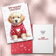A frente desta bela placa de Dia de os namorados tem uma imagem de um adorável cão de filhote de Retriever Ouro vestindo um suéter vermelho de inverno com corações brancos. O texto no topo diz "Você será meu NAMORADOS?" O dentro diz "Acho que você foi fofo" e "Feliz dia de os namorados". Todo o texto, frente e dentro podem ser personalizados para qualquer outra coisa que você preferir.