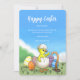 O frango recém-eclodido deseja um felz pascoa à minhoca.