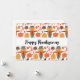 Cartão de Ação de Graças com padrão de queda sazonal, Milho, cogumelos e flora. Junto com perus e espantalhos para honrar a tradição de Ação de Graças.