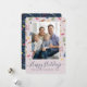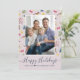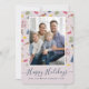Padrão de aquarela com cervo, pássaro, árvore e folhagem, sua foto favorita, sobreposição de script "Paz na Terra" em cartão de Natal rosa empoeirado.