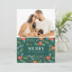 Cartão De Festividades Padrão de Natal mais alegre da Poinsettia Verde Fo