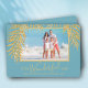 Frentes de palma brilhantes douradas brilhantes em azul destacam sua foto favorita nessas Cartões de foto de Natal de feriado. "É uma vida maravilhosa", ou qualquer saudação que você escolhe, e seus nomes embaixo em letra chic. Adicione mais fotos ou mais detalhes na parte traseira com o link PERSONALIZAR. Selecione Alta Definição para melhor qualidade. MAIS CORES feitas para você em nossa loja.