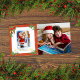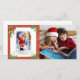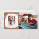 Adorável Papai Noel antigo com borda vermelha, azevinho verde, velas de Natal e sinos dourados, com uma foto personalizável à direita. O modelo do seu texto de saudação está no verso.