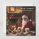 Um cartão de Natal personalizado com Papai Noel sentado na sala com uma linda lareira e árvores de Natal, comendo os biscoitos deixados para ele pelas crianças. Este design foi criado por Debbie Quick da Debs Creative Images: www.debscreativeimages.com