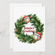 Este cartão de Natal com tema desportivo único apresenta ilustrações de uma coroa verde de férias com Papais noeis de baseball com capas. Mensagem personalizável de "Saudações da Estação" no centro.
