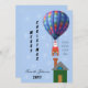 Aí vem Santa Clause num balão de ar quente. Adicione um pouco de diversão e capricho aos seus cartões de Natal. Personalizar com o nome da família e o ano.