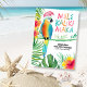 Mande uma alegria tropical e desejos calorosos com este cartão de Natal. Apresentando um papagaio aquoso em um chapéu de Papai Noel e uma tipografia de "Mele Kalikimaka", emoldurada por folhas de palma e flores de hibisco. Trabalho de arte por KL Stock.