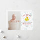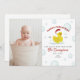 Ilustração de um brinquedo de banho de patos de borracha vestindo um chapéu de santa rodeado de bolhas. Personalize o texto e a foto.