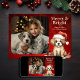 Celebre o Natal com nossos Papais noeis, Feliz de papoila e Cartão de Natal de Cão Brilhante! Com um filhote adorável, esta placa personalizável espalha alegria festiva. Compartilhe-o com entes queridos e adicione sua família ou foto de cachorro favorita para um toque pessoal. Compartilhe a alegria da estação com este cartão encantador!