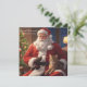 Um Cartão de Natal personalizado com um gato sentado no colo dos papais noeis e dizendo-lhe quais são os seus desejos de Natal.