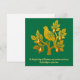 Um cartão de Natal encantador com uma fotografia de um perdiz numa pera. A imagem tem uma aparência falsa de ouro e está em um fundo verde esmeralda contrastante. Abaixo, encontram-se as palavras da tradicional canção de Natal "No primeiro dia de Natal, o meu verdadeiro amor me enviou, uma papa numa árvore de pera". Uma escolha elegante para enviar cumprimentos festivos a amigos e familiares.