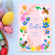 Abelhas e design de jardim de flores adoráveis em cores brilhantes que é perfeito para um cartão de saudação de Páscoa.
