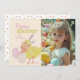 Envie cartões de saudação de Páscoa bonitos e modernos personalizados com sua foto e seu nome. Criado usando ovos de Páscoa pintados à mão, pintinho com orelhas de coelho e um padrão de feijão de geleia divertido em primavera de cores no dorso. Arte original de Leslie Larson.