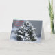 O Evergreen pesado com neve traz o desejo de paz de Natal.