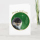 Paz na terra. Mostre sua razão para a estação com seu Pomeranian neste design original do cão acentuado com verde e ouro. Vai o excelente em um ornamento, em um cartão ou em uma etiqueta.
