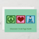 Peace Love Yoga em um belo cartão verde de feriado com seu texto personalizado abaixo. Mande estes cartões bonito para as férias ou o Natal. Um sinal de paz, coração, e alguém em uma pose de yoga estão nesse cartão de saudação fofo.