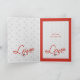 Personalize este cartão de Natal para aquele que você ama, vermelho e cinza com corações, estrelas e um arco branco. Diga algo romântico, para mostrar como eles são especiais