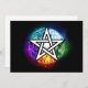 Pentagrama luminoso desenhado artificialmente com cinco elementos mágicos, água, terra, fogo, astral, ar sobre fundo negro. Pentagrama Wiccan. Wicca