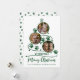 Adicione suas fotos de gato bonitinho a este cartão de Natal personalizado do amante de animais de estimação, com a árvore de Natal formada por três fotos e estampas de pata. No verso está um padrão de estampas de pata de gatos.