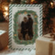 A warm and timeless photo Christmas card framed with hand-painted evergreen branches, golden bells, and red berries. The classic holiday colors and rustic striped border create an elegant yet cozy aesthetic — perfect for families who love traditional Christmas charm with a modern touch.