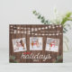 Envie sua correspondência de férias em estilo com este cartões de fotos festivo de Férias Felizes. Este design apresenta cones de pínus, holly, luzes de cordas e três fotos enquadradas angustiadas com um fundo de madeira escura. Sinta-se à vontade para entrar em contato comigo através do recurso de mensagem se precisar de assistência com este design ou se quiser adicionar outra personalização. Ou contacte-me por correio eletrônico em zazzlestores@yahoo.com. Trabalho de arte criado por Casa para os feriados.