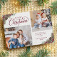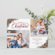 Este belo cartão branco e arrojado de Feliz Natal apresenta 2 modelos fotográficos, com elegante roteiro clássico de caligrafia, enquadrado em 2 cantos com cinzas aquáticas de pinheiros verdes, cones de pinheiros e bagas sagradas. Na parte de trás está uma textura de cor d'água borrado. Verifique a coleção de muitos produtos correspondentes ou entre em contato comigo através do Zazzle Chat se você quiser produtos adicionais correspondentes ou outras formas de cores.