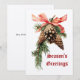Esta modelo de cartão Natal Holiday apresenta uma simples ramificação de árvore de Natal rústica com pinecones e uma fita vermelha. Você pode personalizar facilmente o texto e personalizar a cor de fundo com este modelo.