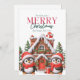Cartão De Festividades Pinguim de Natal Fofo e Casa de Biscoito