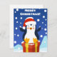Pinguim de natal feliz vestindo chapéu de Papai Noel com neve caindo.