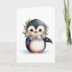 Cartão De Festividades Pinguim Fofo Com Cachecol e Azevinho EM BRANCO