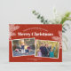 Esta elegante placa natalícia apresenta um fundo vermelho escuro com gráficos e texto que aparecem em branco. Este design moderno oferece duas fotos horizontais destacadas com galhos de pinheiro de inverno. A saudação diz: "Da nossa casa até ao seu Feliz Natal." Fotografia © Storytree Studios, Stanford, CA