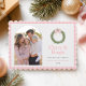Add a charming touch to your holiday season with these personalized holiday cards featuring a delightful watercolor coquette wreath design and a beautiful arch photo template on a pink gingham background. The festive green Christmas wreath, adorned with a beautiful pink bow will bring a playful yet elegant feel to your holiday season.