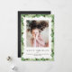 Este lindo cartão de Natal apresenta galhos verdes de pinheiros com cor d'água com pinecones castanhos e um quadro preto moderno no verso. Adicione sua foto pessoal favorita. Arte via LABFcreations.
