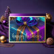 Cartão De Festividades Pintando presentes de Natal Azul Roxo Dourado