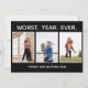 Estes hilariantes cartões de Ano Novo ou de Natal chegam a hetero do ponto de apontar a desastrosa pandemia e quarentena. Ele mostra três fotos da sua família na frente sob a frase engraçada Pior Ano de Todos, em branco e preto para as festas. Personalize a parte de trás deste cartão de humor de feriado para 2021 com uma fotografia dos vossos filhos e o vosso texto personalizado. Perfeito para um Natal distanciante.