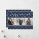Placa de Feliz ano novo de xadrez azul personalizada de búfalos apresentando uma fonte moderna de script e uma colagem de fotos em um fundo de xadrez de búfalos azul. Personalizar facilmente online.