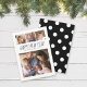 Este cartão fotográfico apresenta quatro das suas fotografias e as palavras "Feliz ano novo" numa letra serif, escrita à mão, de tendência. A placa tem um padrão circular bruto branco sobre um fundo preto. Personalize-o substituindo o texto de marcador de posição e substitua as fotos de amostra/marcador de posição por sua própria foto. Para obter mais opções, como alterar a fonte e seu tamanho/cor, clique no botão "Personalizar". Fotografia de espaço reservado por © Storytree Studios, Stanford, CA *Note que a marca de água Zazzle que aparece na visualização de zoom NÃO aparecerá no produto impresso final. © Rosewood e Citrus