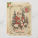 Envie desejos de feriado quente com este cartão de natais vintages! Apresentando Papai Noel desenhado à mão, renas e pinheiros em papel creme envelhecido com textura de neve, bordas decorativas antigas e marcas postais clássicas. Perfeito para cartões de natal nostálgicos, decoração sazonal e comemorações festivas. Texto personalizável na parte frontal e traseira do cartão para que você possa adicionar seu toque exclusivo a este belo cartão de feriado. Compartilhe o charme de Natal eterno com a família e os amigos!